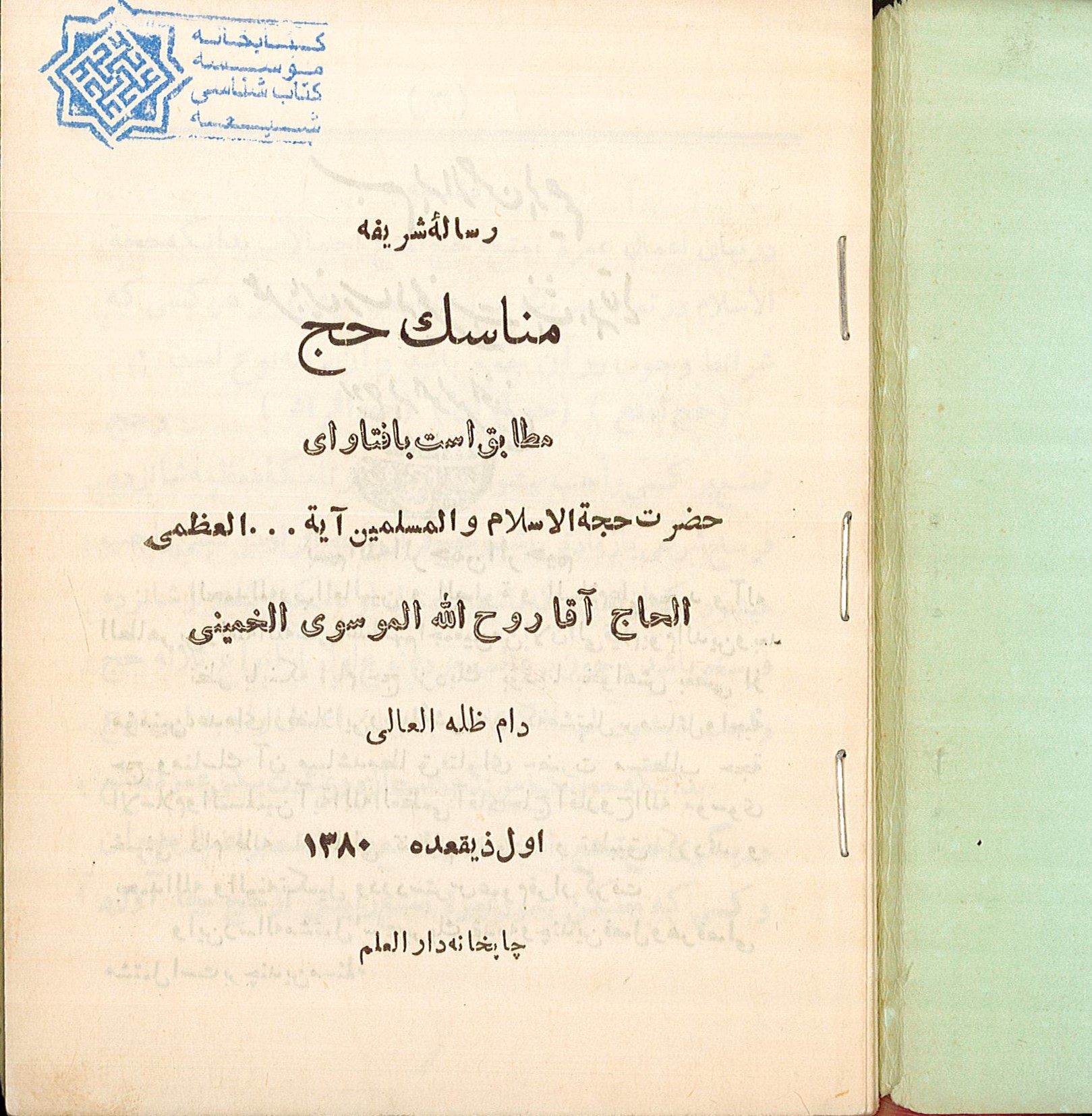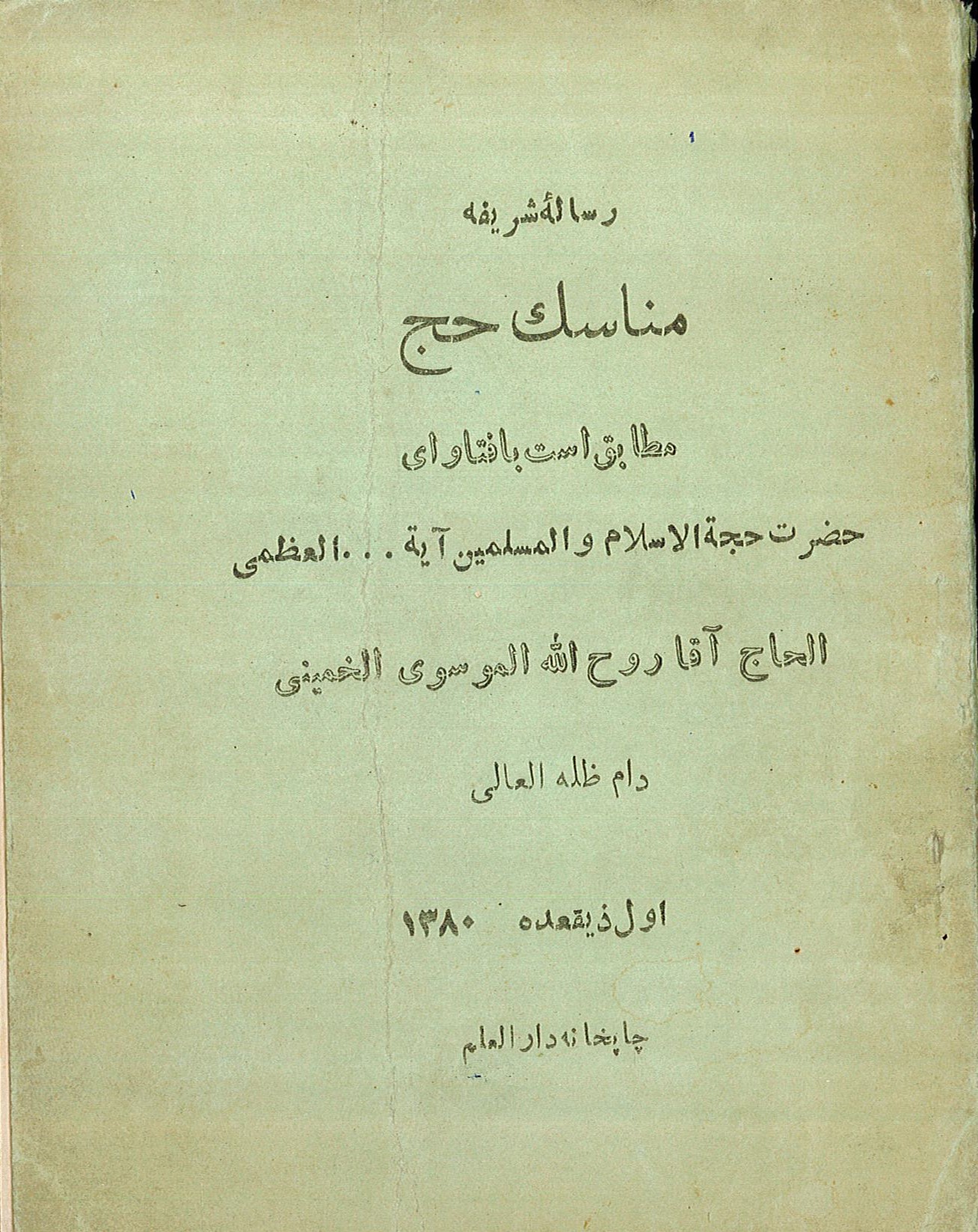 مناسک حج امام خمینی در قطع نیم جیبی در 88 صفحه در اول ذیقعده 1380ق فقط هفده روز پس از وفات آیةالله بروجردی، اعلی الله مقامه (م 13 شوال 1380ق) منتشر شده است.